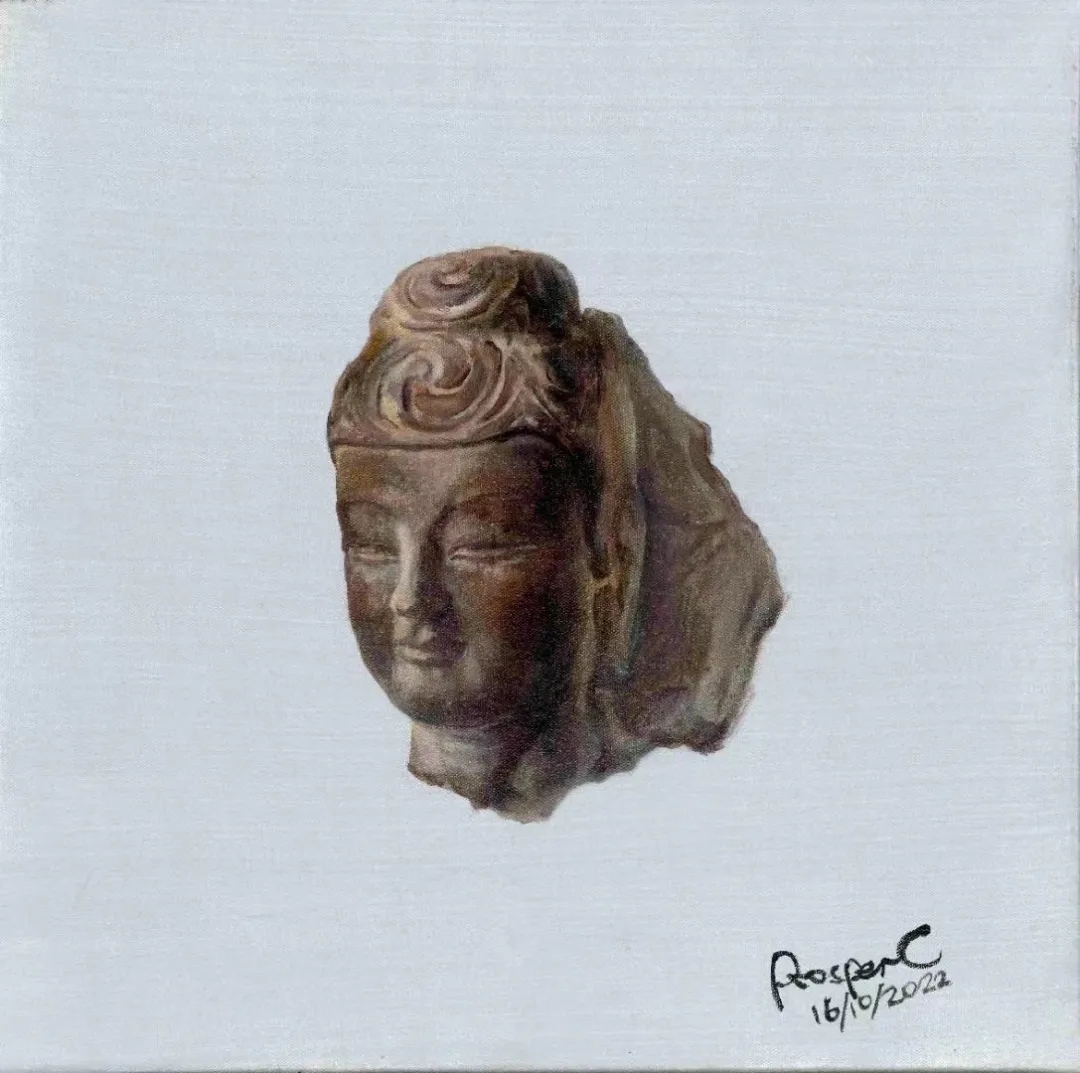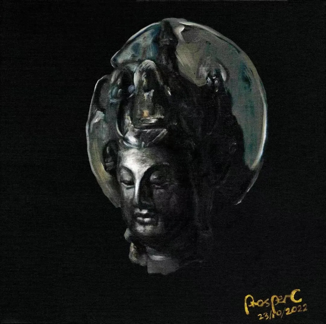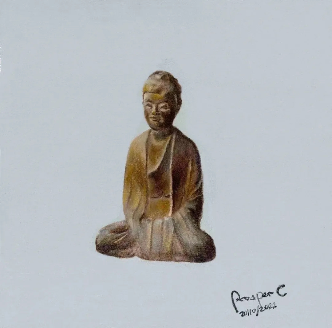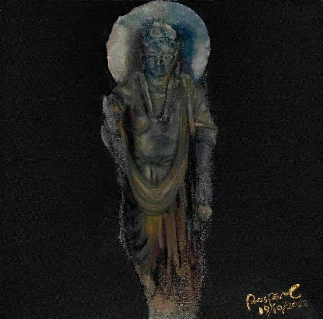 张伯世的作品以“清净”为主题,他将人心中象征永恒的形象作为主体,刻画出其沉淀的岁月感,置于画布中心,并将四周直接以单色覆盖,呈现一种在宁静与庄重中历史与当下的冲突感。使观者在此一瞬,作为恒久岁月的见证者,与永恒形成了连接。
