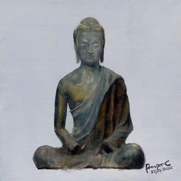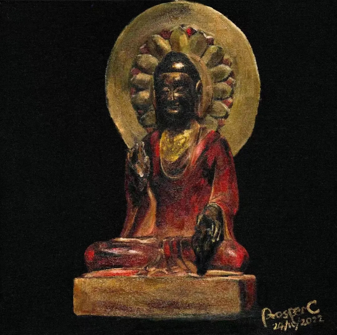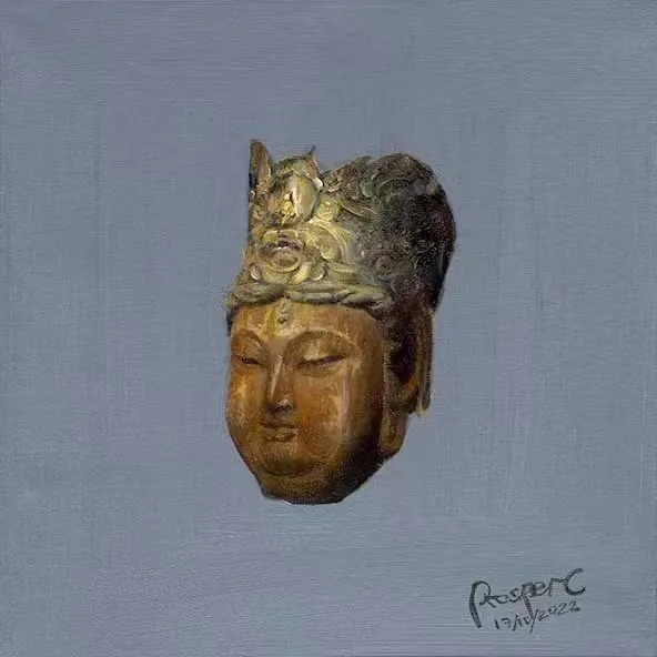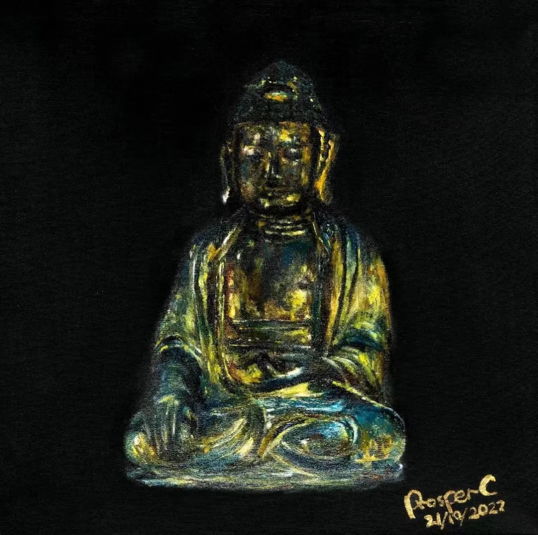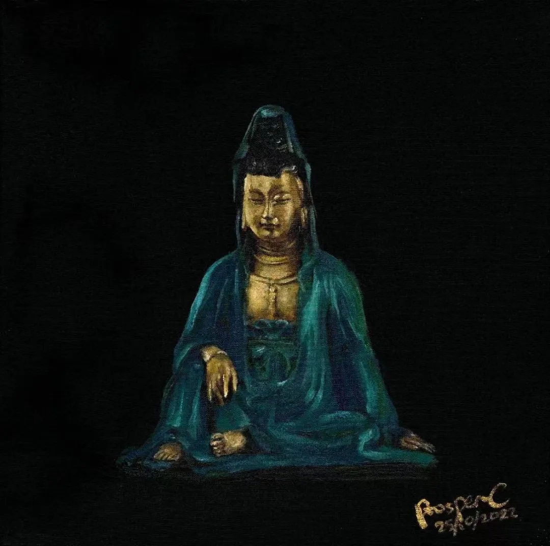 张伯世的作品以“清净”为主题,他将人心中象征永恒的形象作为主体,刻画出其沉淀的岁月感,置于画布中心,并将四周直接以单色覆盖,呈现一种在宁静与庄重中历史与当下的冲突感。使观者在此一瞬,作为恒久岁月的见证者,与永恒形成了连接。