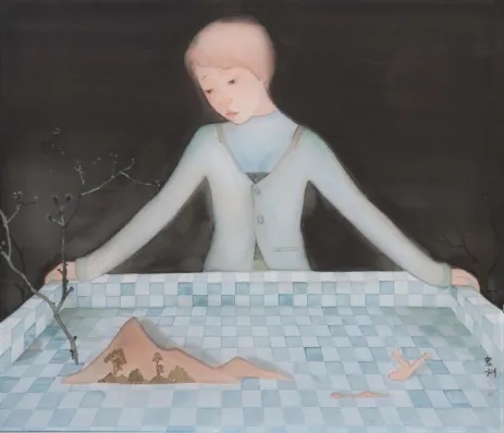 我试图将“自我”从外界环境中剥离出来,置于一个隐匿的非现实场景之中,人物游离散漫,沉浸在某种神秘混沌的境遇里。与自我的对视或为我与外界建立屏障的有效途径,创造也许就发生在这些自我保护的秘境里。 ——王宏州