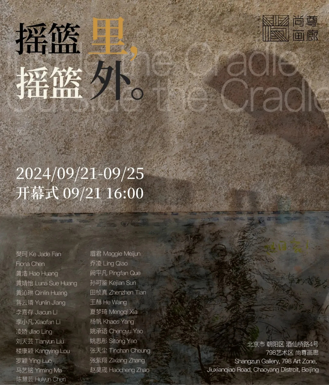 2024年9月21日,北京798艺术区尚尊画廊迎来了一场充满诗意与哲思的展览:“摇篮里,摇篮外 Inside the Cradle, Outside the Cradle”。展览通过多元媒介和丰富的艺术语言,探讨了个体与世界之间的深刻联系。摇篮这一意象作为展览的核心,既象征了生命的起点,也承载着回忆、归属与变迁的隐喻,艺术家们在这个充满情感与记忆的空间里,带领观众走入一场关于生命与时间的深层次对话。